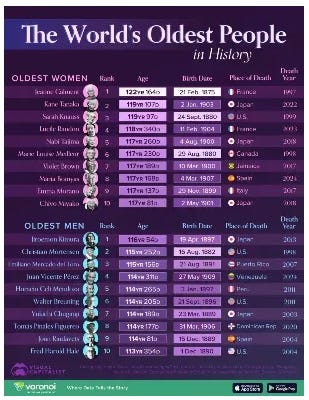 Some fascinating developments, partly fuelled by AI and other modern technological marvels, show that — presuming the ‘bots don’t kill us all — the world record 122.45 years (122y, 164 days) of France’s Jeanne Calmont (1875–1997) could become the new norm within the next few decades.
